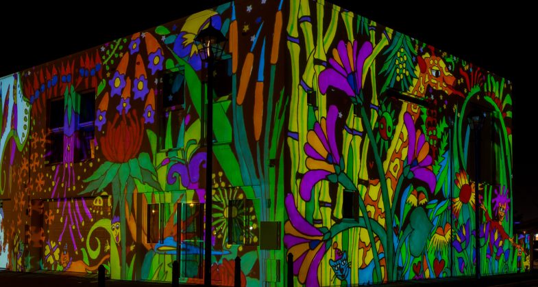 Just wanted to say my family and I came along last night and despite the weather thoroughly enjoyed the murals. The illumination was so clever the way they unfolded, we loved them all but for most of us the “tree of life” was the absolute highlight. The way the artist used the medium to get glimpses of patterns through cracks and the falling leaves was so beautiful. Whilst more permanent murals would be great there was also something really lovely about how the artists cleverly used the temporary medium. We also thought the choice of music was fab, and so suited all the works.