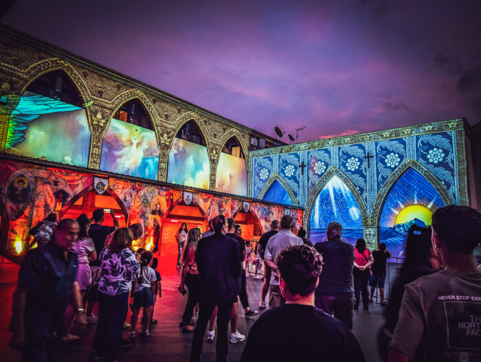 The 2025 event continued illuminart’s signature approach to blending projection with physical embellishment, incorporating a digitally printed textile backlit as part of the show’s luminous aesthetic — a technique that has long featured in the team’s creative toolkit. The concept was developed collaboratively with community leader Charles Charbel, building on shared expertise in textile fabrication and architectural decor.